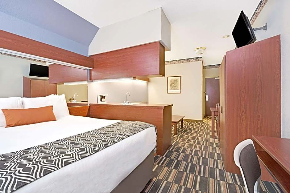 This disability accessible suite has a sofa bed, coffeemaker, microwave and refrigerator.